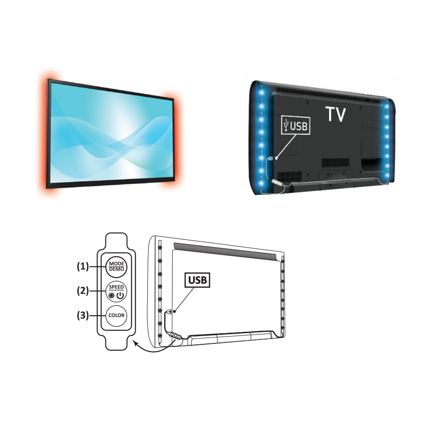Σετ LED Ταινίας 2×0.5m Πολύχρωμη RGB 5V για Τηλεόραση με USB ACA IP65 2×2.4W – TVLIT