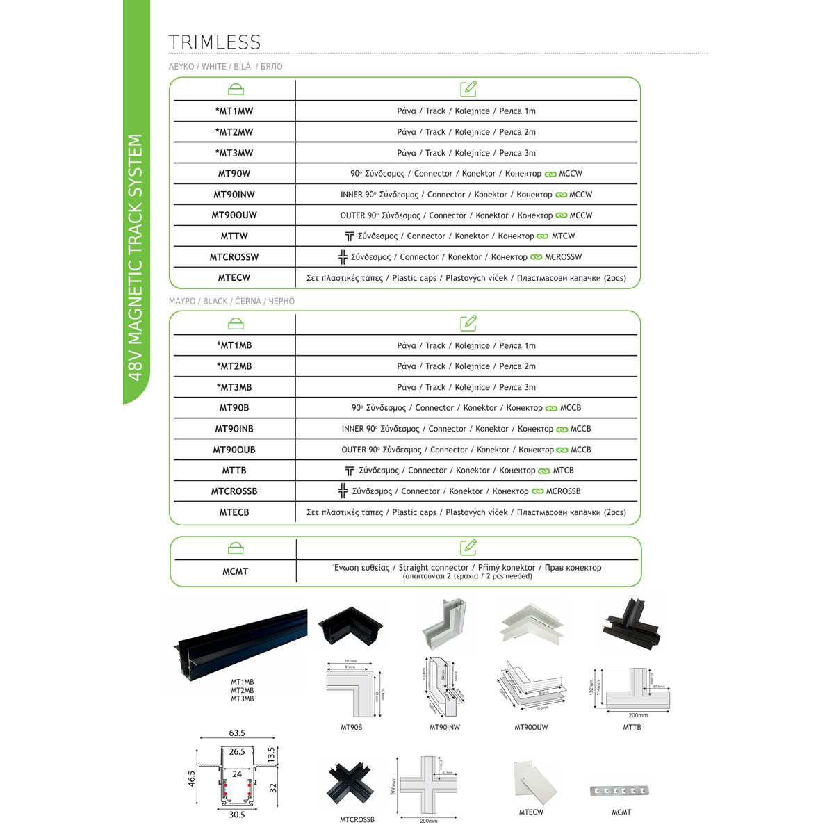 Σετ Πλαστικές Τάπες (2 τμχ) για Μαγνητική Ράγα Χωνευτή Trimless 48V Μαυρο ACA – MTECB