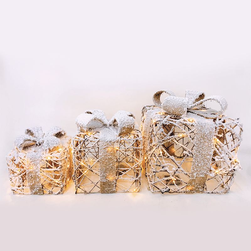 SET RATTAN GIFT BOX, NATURAL BURLAP BOW 90(20+30+40) WW MINI LED ΜΠΑΤ. 3*3ΑΑ IP20 18,24,30CM ACA – X1190113