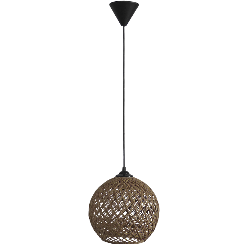 Κρεμαστό φωτιστικό μπάλα σχοινί φυσικό χρώμα με καλώδιο Μαύρο SILK-01 Φ20 NATURAL 1/L PENDEL Ε/27