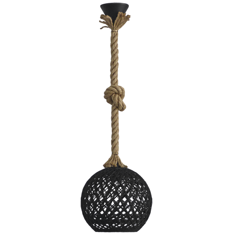 Κρεμαστό φωτιστικό μπάλα σχοινί μαύρη με σχοινί κόμπο SILK-01 Φ20 Σχοινί Μαύρο UT-BL 1/L Ε/27