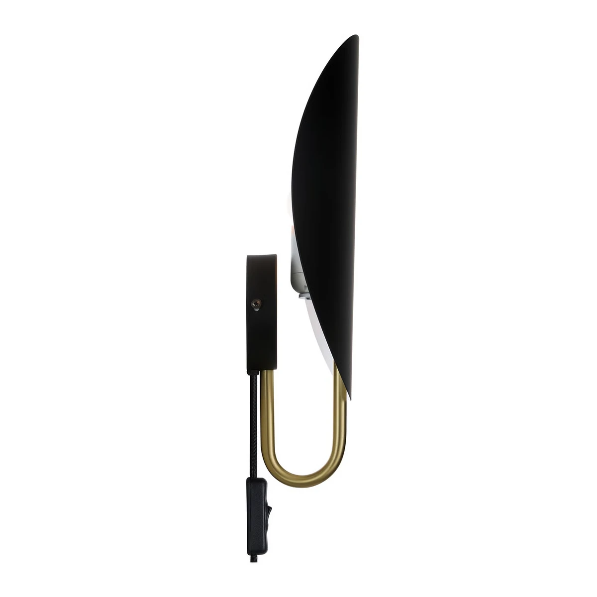 Το φωτιστικό συνδυάζει μαύρο μεταλλικό σώμα με λεπτομέρειες από brushed brass, δημιουργώντας μια κομψή αντίθεση που ταιριάζει ιδανικά σε σύγχρονους και minimal εσωτερικούς χώρους. Η μεταλλική βάση συγκρατεί το καπέλο με τρόπο που δίνει στο φωτιστικό μια ιδιαίτερα κομψή και αρχιτεκτονική εμφάνιση.