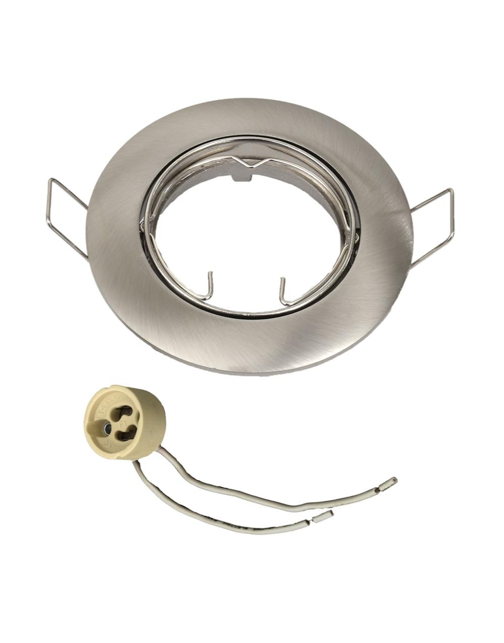 Spot χωνευτό κινητό για λάμπα με ντουί GU10 σε νίκελ χρώμα με ονομαστική ισχύς 50W και τάση τροφοδοσίας 230V. Έχει βαθμό στεγανότητας IP20, η γείωση γίνεται με βίδα και η κλάση μόνωσης είναι CLASS II. Εγγύηση 2 έτη από την Universe. Περιλαμβάνεται ντουί για λάμπες GU10