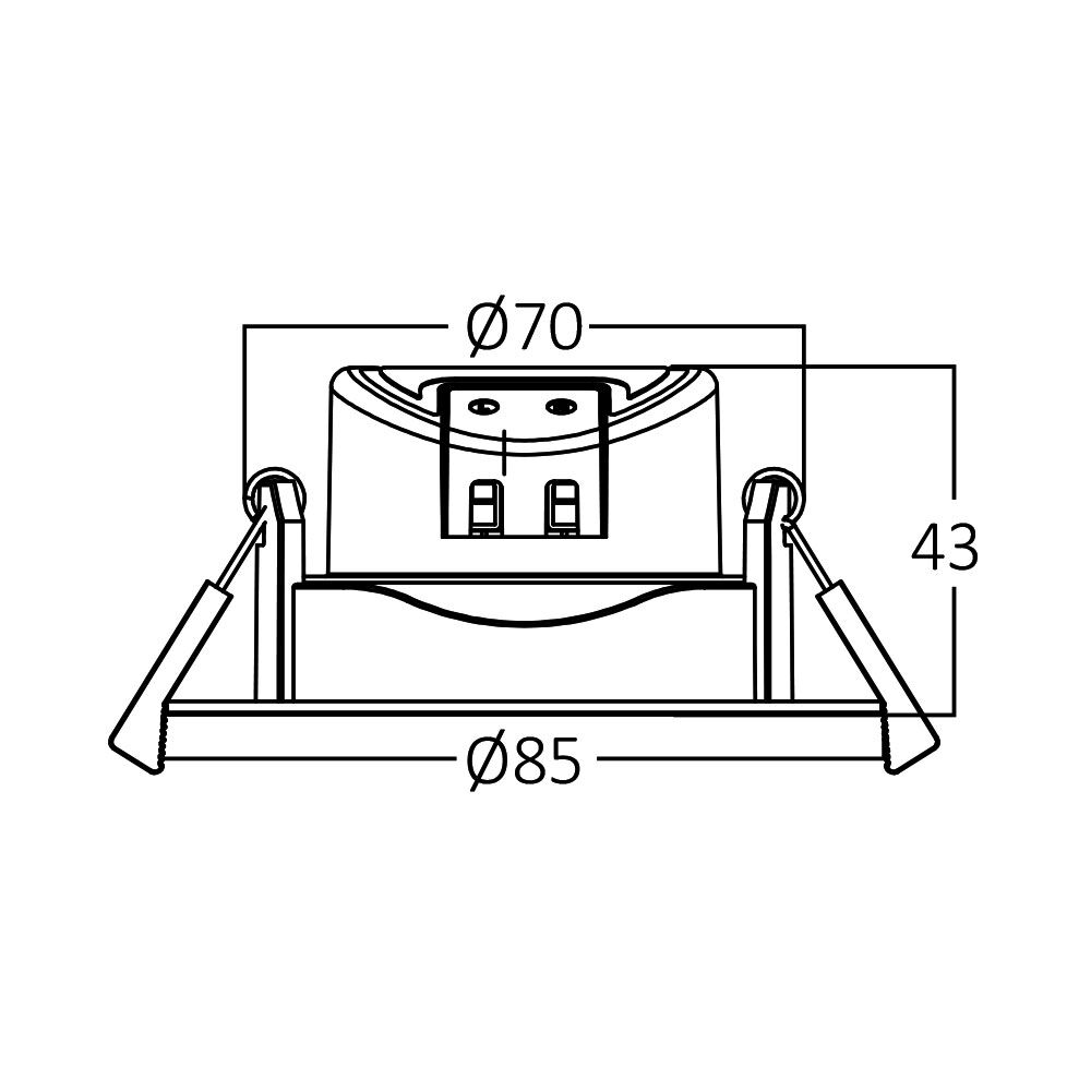 📏 Διαστάσεις: Διάμετρος ~85 mm × Ύψος ~43 mm · Cutout: ~70 mm