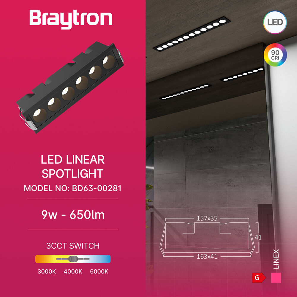 Επιλέξτε το Σποτ LED Linex 9W 3CCT Μαύρο – BD63-00281 της Braytron για αποδοτικό, ευέλικτο και κομψό φωτισμό στον χώρο σας.