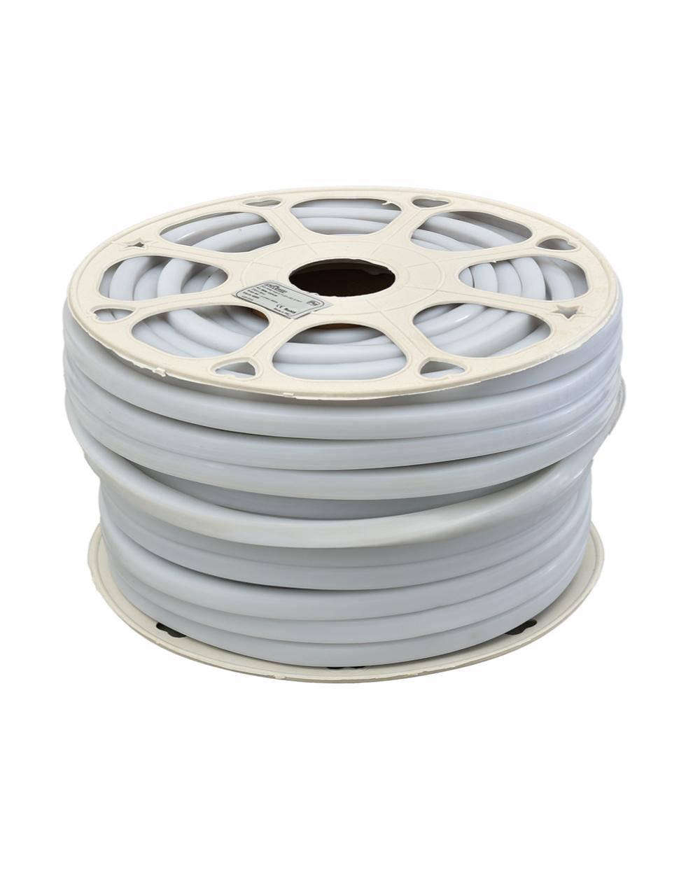 Ταινία LED Square neon flex με τάση τροφοδοσίας 220-240V και ονομαστική ισχύς ανά μέτρο 8W. Η θερμοκρασία χρώματος είναι 4000K. Ο βαθμός στεγανότητας είναι IP65, η γωνια δέσμης 330 μοίρες και η διάρκεια ζωής της ταινία είναι 25000h. Ο τύπος LED είναι SMD2835 και σε κάθε μέτρο υπάρχουν 120 LED. Τα σημεία κοψίματος της ταινίας βρίσκονται κάθε 1 μέτρο και ο τρόπος κάμψης της είναι top bending. Το κάθε καρούλι διαθέτει 50 μέτρα ταινίας.