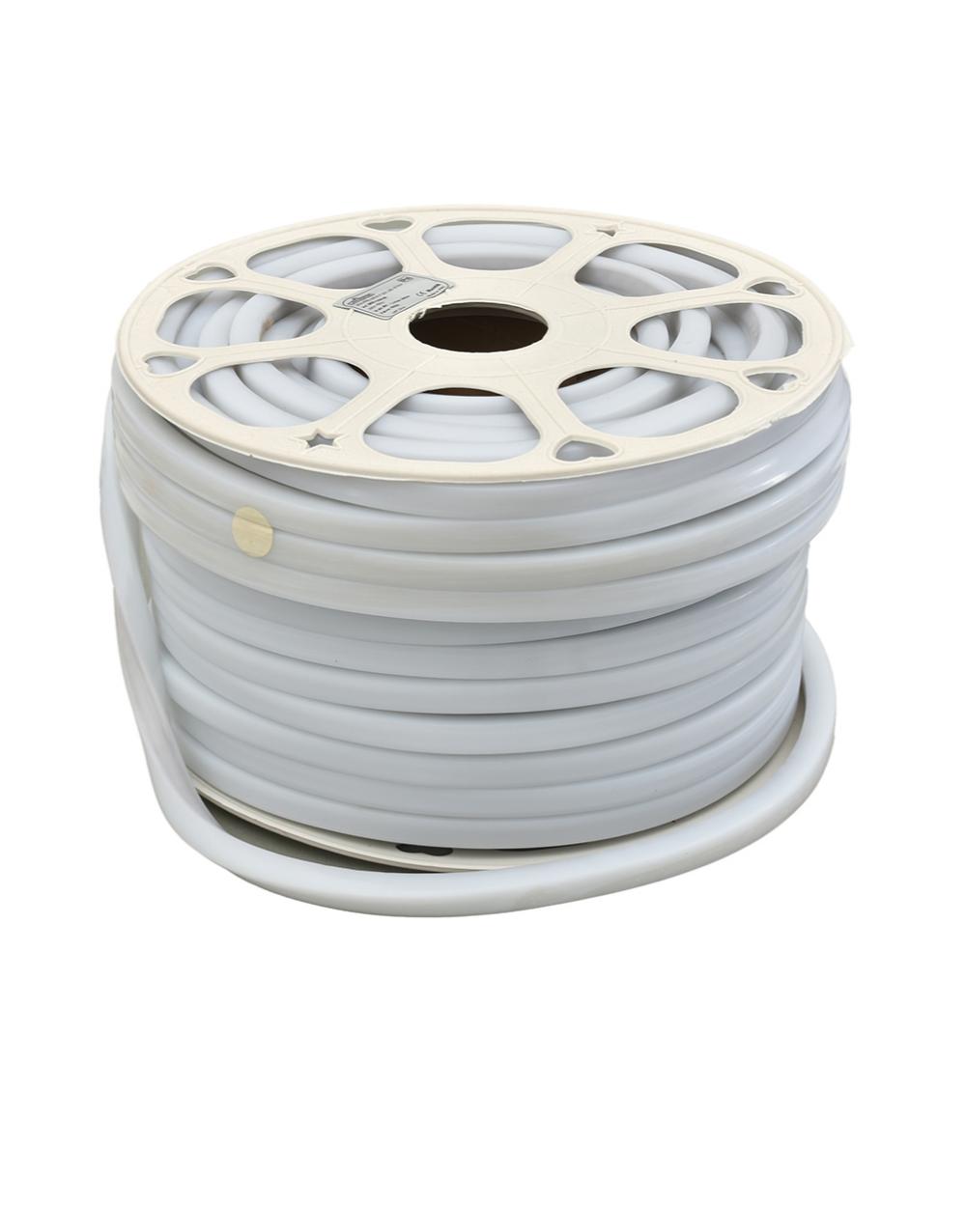 Ταινία LED Square neon flex με τάση τροφοδοσίας 220-240V και ονομαστική ισχύς ανά μέτρο 8W. Η θερμοκρασία χρώματος είναι 6000K. Ο βαθμός στεγανότητας είναι IP65, η γωνια δέσμης 330 μοίρες και η διάρκεια ζωής της ταινία είναι 25000h. Ο τύπος LED είναι SMD2835 και σε κάθε μέτρο υπάρχουν 120 LED. Τα σημεία κοψίματος της ταινίας βρίσκονται κάθε 1 μέτρο και ο τρόπος κάμψης της είναι top bending. Το κάθε καρούλι διαθέτει 50 μέτρα ταινίας.