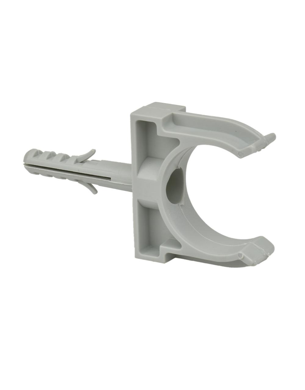 Στήριγμα σωλήνας Φ32 με ούπα Φ6 και βίδα σε γκρι χρώμα από PVC.