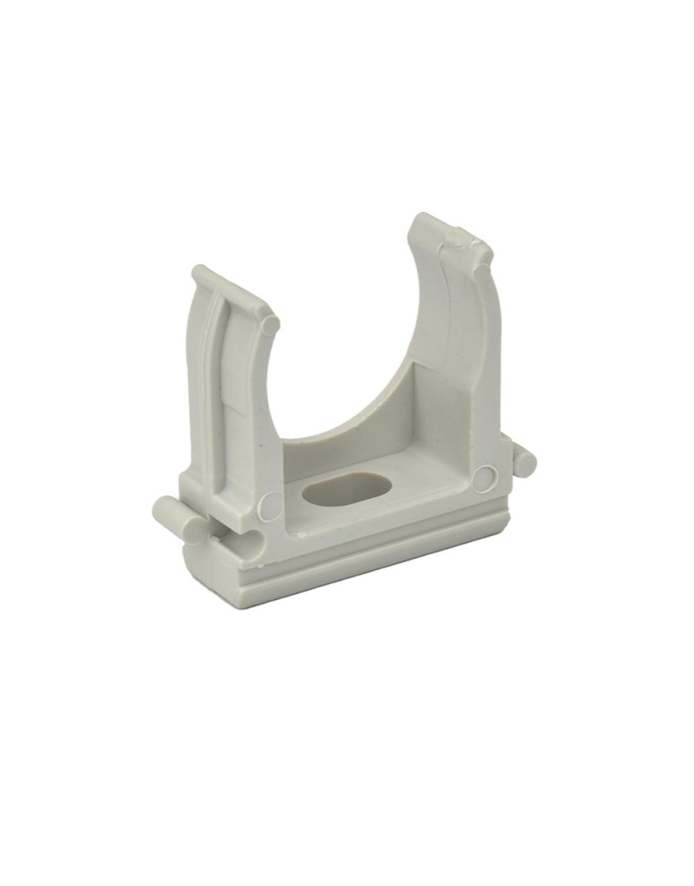 Στήριγμα σωλήνας Φ25 σε γκρι χρώμα. Είναι από τεχνοπολυμερές υλικό χωρίς αλογόνο και διαθέτει αντοχή σε υψηλή θερμότητα.