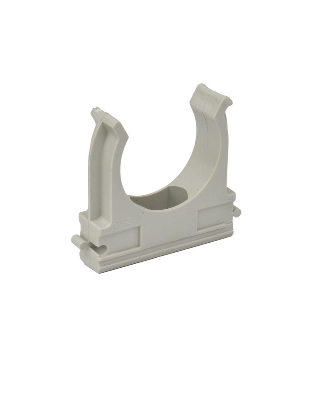 Στήριγμα σωλήνας Φ32 σε γκρι χρώμα. Είναι από τεχνοπολυμερές υλικό χωρίς αλογόνο και διαθέτει αντοχή σε υψηλή θερμότητα.