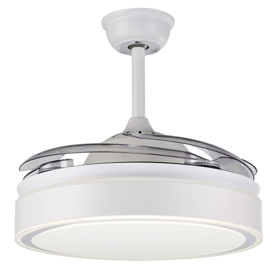 Ανεμιστήρας οροφής με φως, τηλεχειριστήριο και dc μοτέρ με ανοιγόμενα πτερύγια. Η βάση είναι από αλουμίνιο, σε γκρι χρώμα, και τα πτερύγια από ακρυλικό .