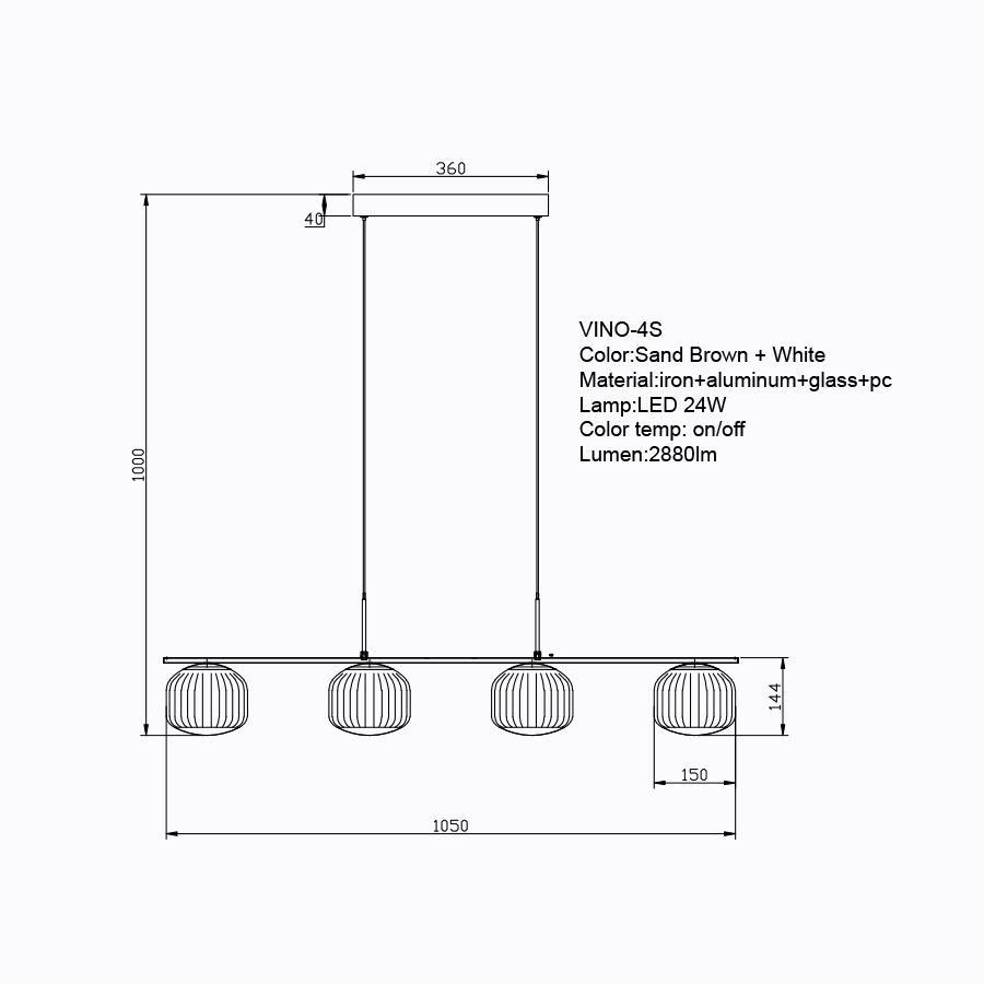 Sun Light ΚΡΕΜΑΣΤΟ 4ΦΩΤΟ ΦΩΤΙΣΤΙΚΟ ΟΡΟΦΗΣ-ΚΩΔ. VINO-4S