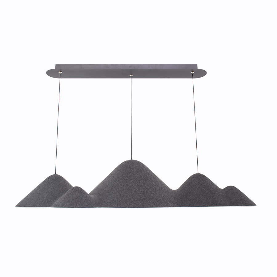 Κρεμαστό φωτιστικό από ηχοαπορροφητικό υλικό (PET Felt) που μειώνει τον θόρυβο στο χώρο σε μαύρο χρώμα.Ύψος: 175 εκ.Μήκος: 110 εκ.Πλάτος: 54 εκ.Τύπος Λαμπτήρα: Samsung Led ChipWatt: 21WLumen: 1250lmΘερμοκρασία Χρώματος: 3000Κ, CRI>90Dimmable: Όχι