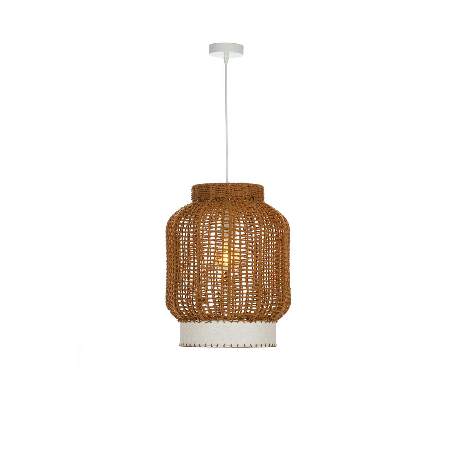Κρεμαστό μονόφωτο φωτιστικό κατασκευασμένο από paper rope σε καφέ χρώμα.