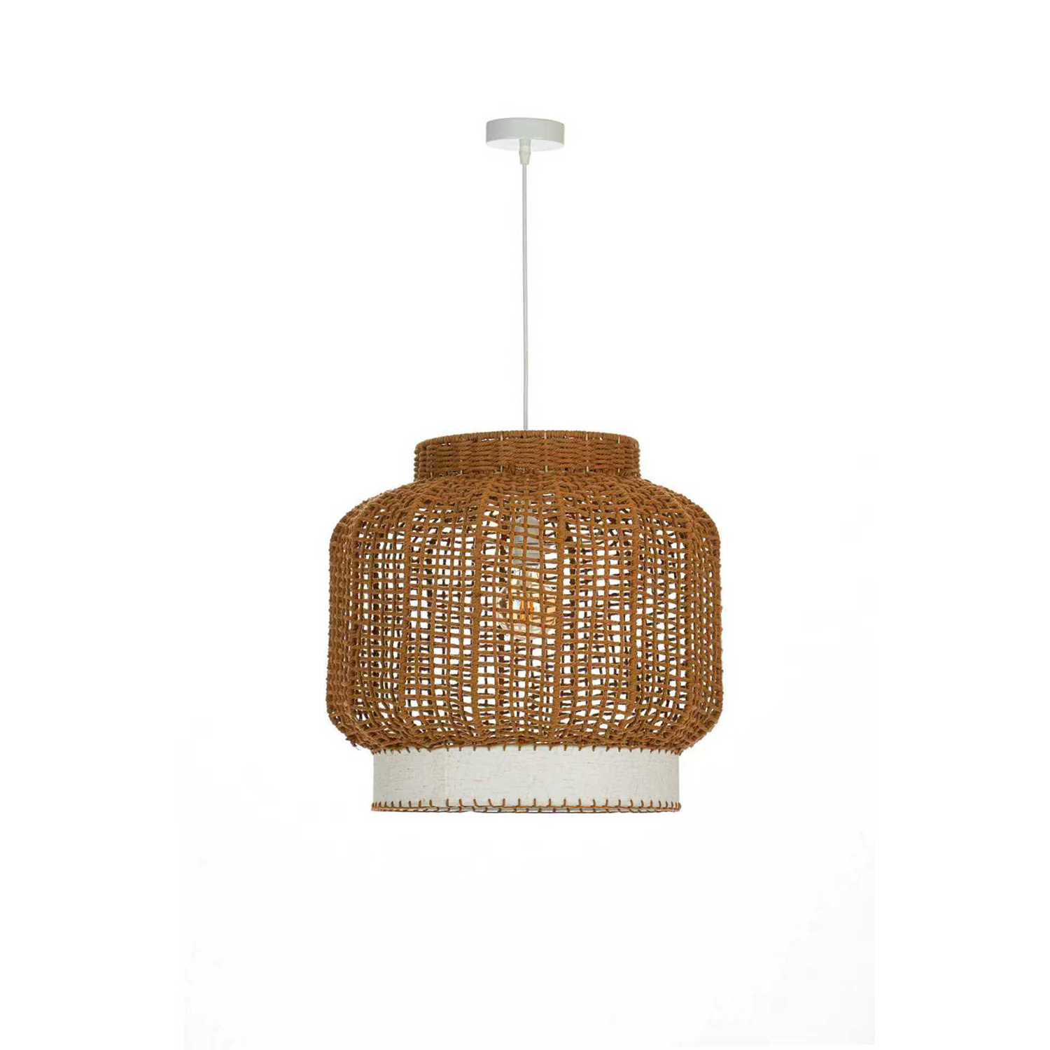 Κρεμαστό μονόφωτο φωτιστικό κατασκευασμένο από paper rope σε καφέ χρώμα.