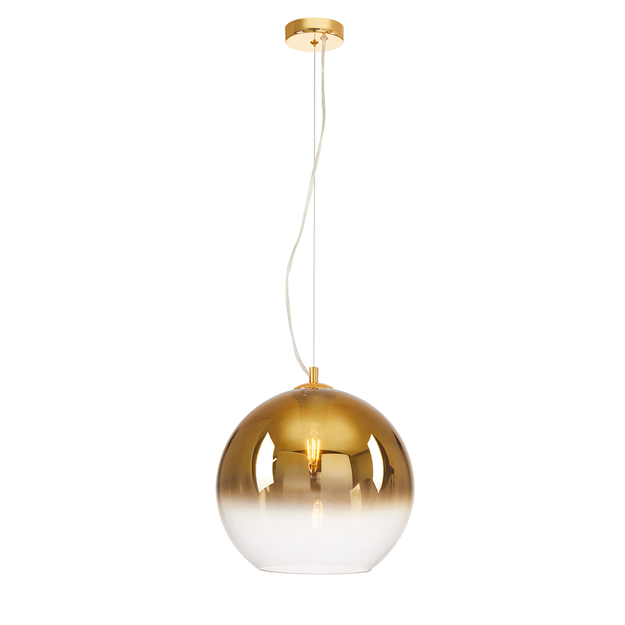 Μονόφωτο-κρεμαστό φωτιστικό κατασκευασμένο από χειροποίητο γυαλί χρυσό ντεγκραντέ και μεταλλική βάση σε χρυσό.