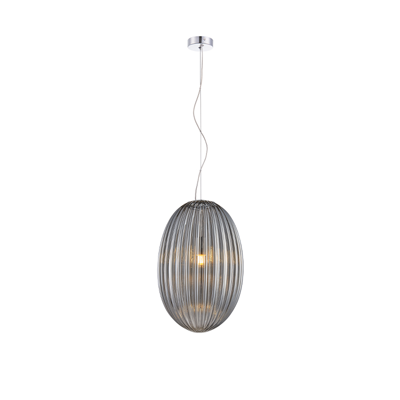 Κρεμαστό μονόφωτο φωτιστικό κατασκευασμένο από χειροποίητο γυαλί και μεταλλική βάση χρωμίουΎψος: 120 εκ.Διάμετρος: 30 εκ.Λαμπτήρες: 1 τεμ.Τύπος Λαμπτήρα: Ε27Watt: 60