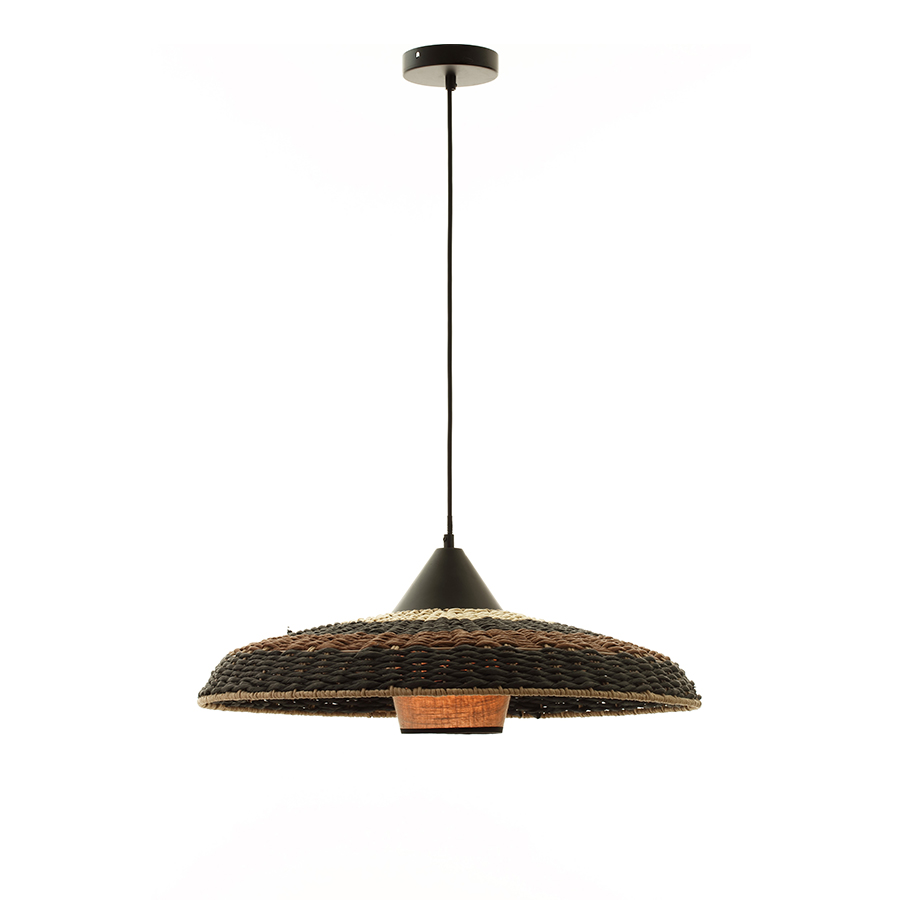 Κρεμαστό μονόφωτο φωτιστικό απο paper rope σε τριχρωμία άσπρο-καφέ-μαύρο.