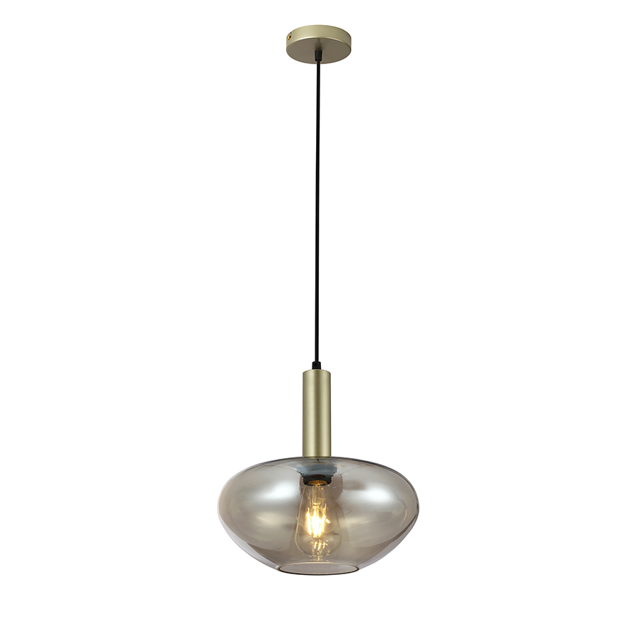 Μονόφωτο κρεμαστό φωτιστικό κατασκευασμένο από χειροποίητο γυαλί σε χρώμα μελί και μέταλλο σε χρυσό ματ.Διάμετρος Γυαλιού : 28 εκ.Ύψος: 120 εκ.Τύπος Λαμπτήρα: E27Λαμπτήρες: 1 τεμ. Max 60W