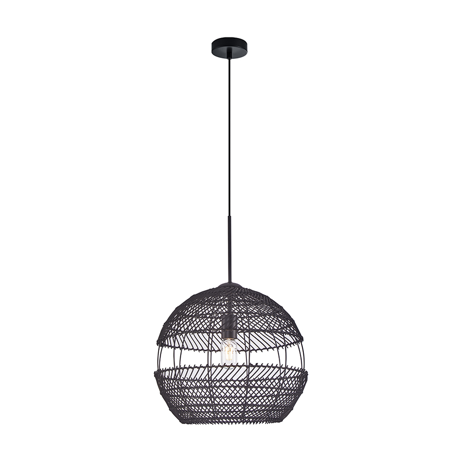 Κρεμαστό  μονόφωτο φωτιστικό κατασκευασμένο από Rattan σε μαύρο χρώμα, και μαύρη μεταλλική βάση.
