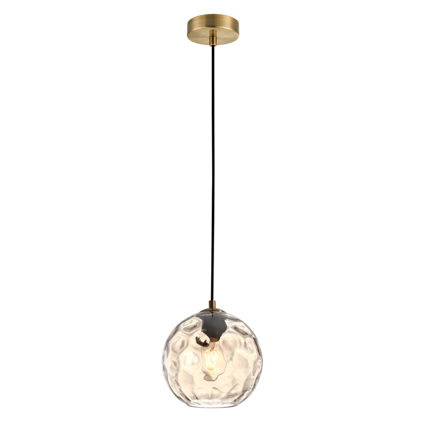 Μονόφωτο-κρεμαστό φωτιστικό κατασκευασμένο από χειροποίητο γυαλί και μεταλλική βάση σε οξυντέ.