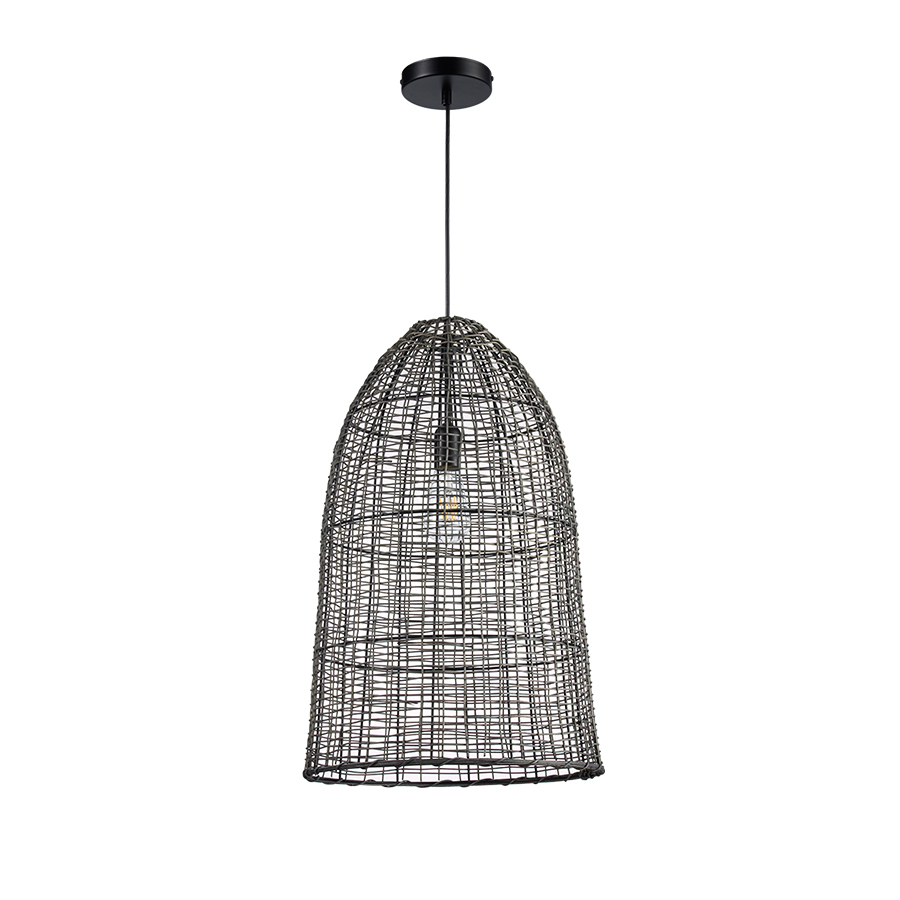 Κρεμαστό μονόφωτο φωτιστικό κατασκευασμένο από rattan σε γκρι χρώμα.
