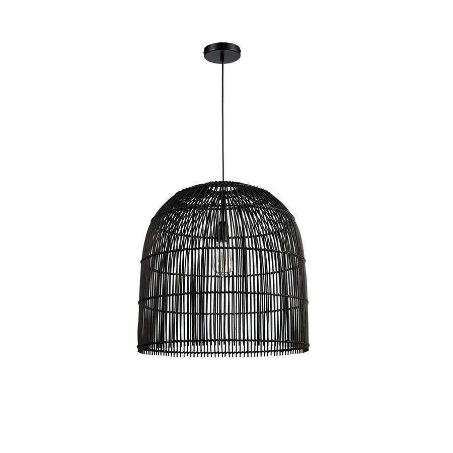 Κρεμαστό  μονόφωτο φωτιστικό κατασκευασμένο από rattan σε μαύρο χρώμα.