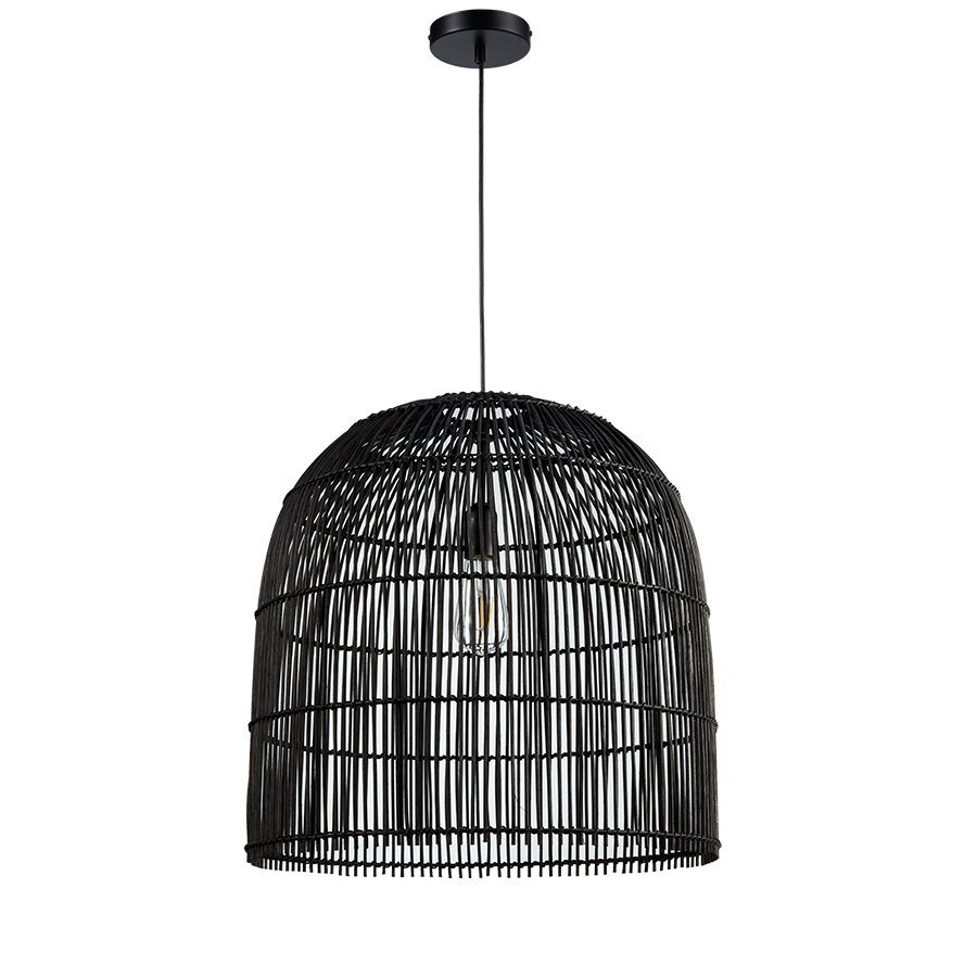 Κρεμαστό  μονόφωτο φωτιστικό κατασκευασμένο από rattan σε μαύρο χρώμα.