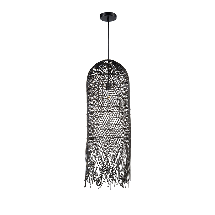 Κρεμαστό μονόφωτο φωτιστικό κατασκευασμένο από rattan σε μαύρο χρώμα.