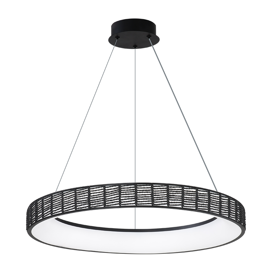Πολύφωτο κρεμαστό φωτιστικό μονός κύκλος LED κατασκευασμένο από μέταλλο και paper fest σε χρώμα μαύρο.Ύψος: 120εκ.Διάμετρος: 61 εκ.Τύπος Λαμπτήρα: LEDWatt: Max. 76WLumen: 2800LmΘερμοκρασία Χρώματος: CCT, CRI>80Dimmable: Ναι (Remote Control)