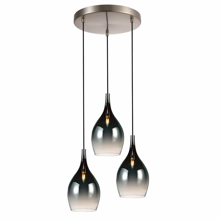 Πολύφωτο-κρεμαστό φωτιστικό, τρίφωτη ροζέτα, κατασκευασμένο από χειροποίητα γυαλιά και μεταλλική βάση σε νίκελ ματ.