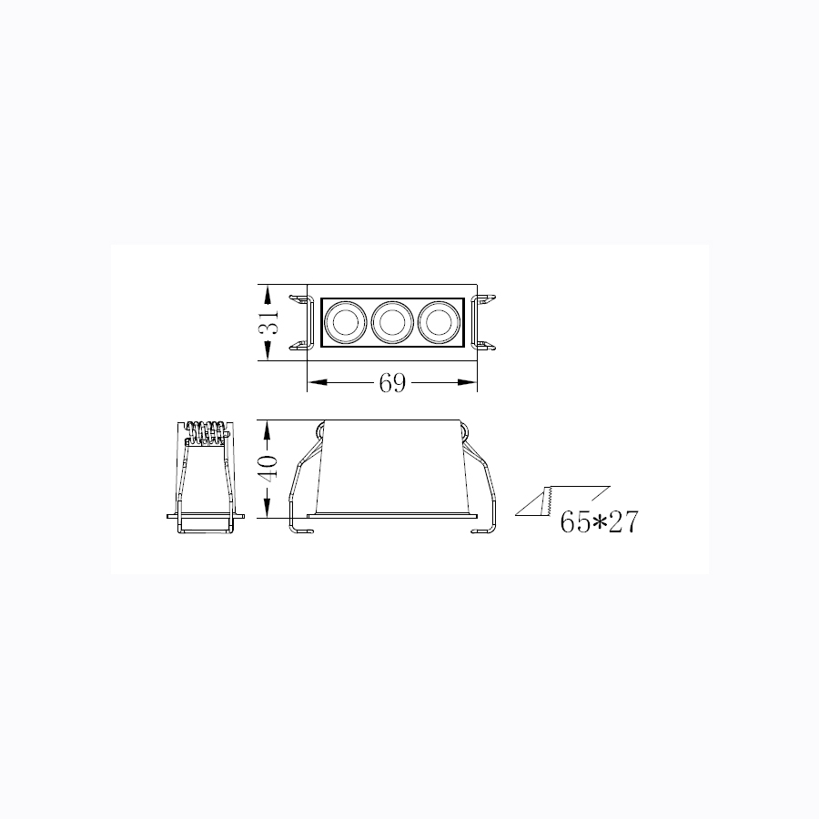 Γραμμικό χωνευτό φωτιστικό τύπου σποτ σε άσπρο χρώμα με μαύρους ανακλαστήρες.