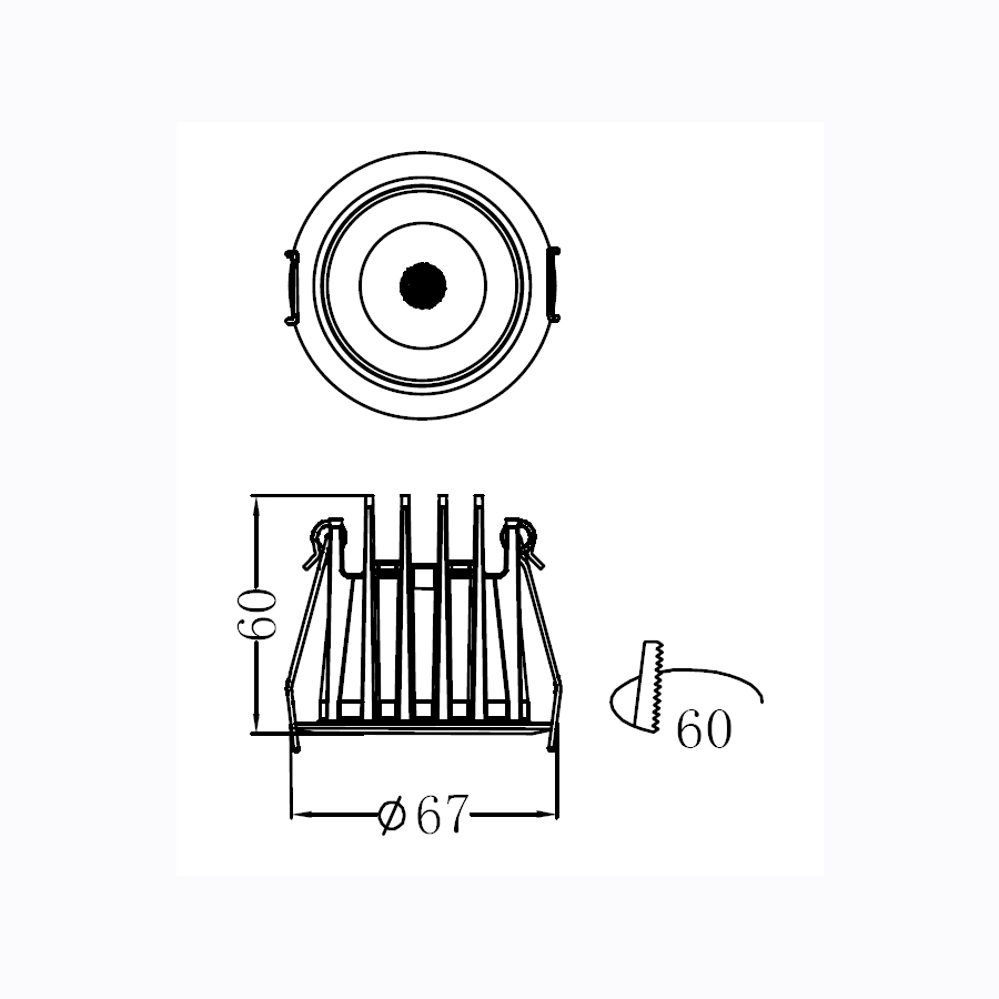 Φωτιστικό σποτ χωνευτό σε άσπρο χρώμα με μαύρο ανακλαστήρα.