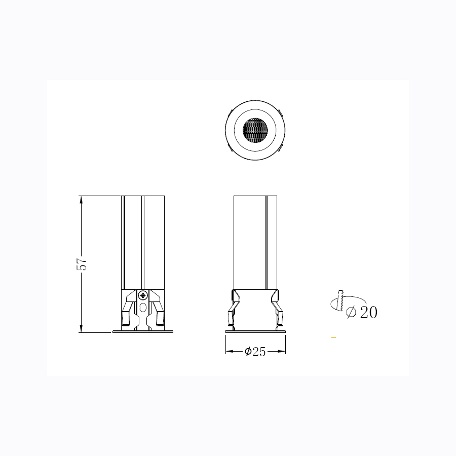 Φωτιστικό σποτ χωνευτό σε γκρι χρώμα με λευκό δαχτυλίδι και μαύρο ανακλαστήρα.