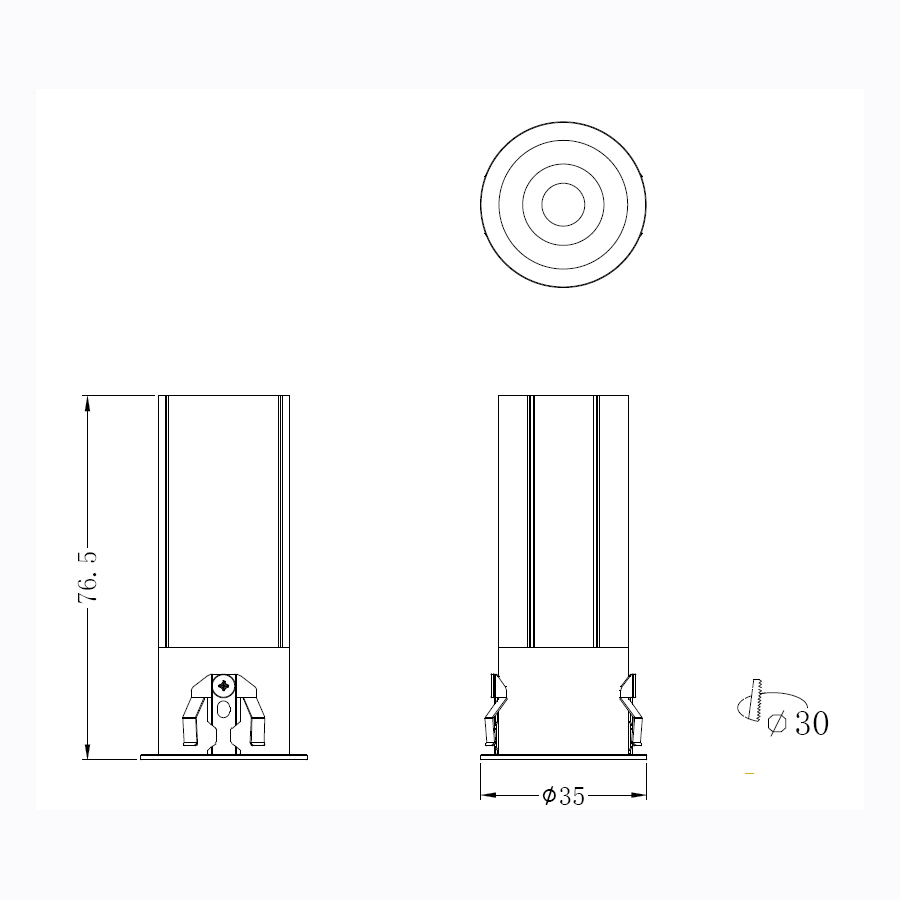 Φωτιστικό σποτ χωνευτό σε γκρι χρώμα με λευκό δαχτυλίδι και μαύρο ανακλαστήρα.