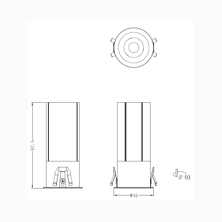 Φωτιστικό σποτ χωνευτό σε γκρι χρώμα με λευκό δαχτυλίδι και μαύρο ανακλαστήρα.