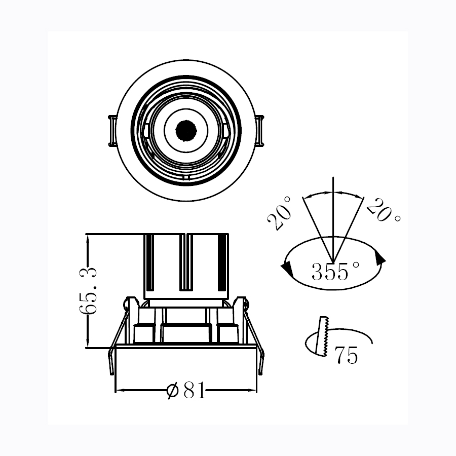 Φωτιστικό σποτ χωνευτό σε άσπρο χρώμα με μαύρο ανακλαστήρα.