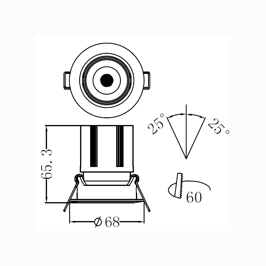 Φωτιστικό σποτ χωνευτό σε γκρι χρώμα με λευκό δαχτυλίδι και μαύρο ανακλαστήρα.