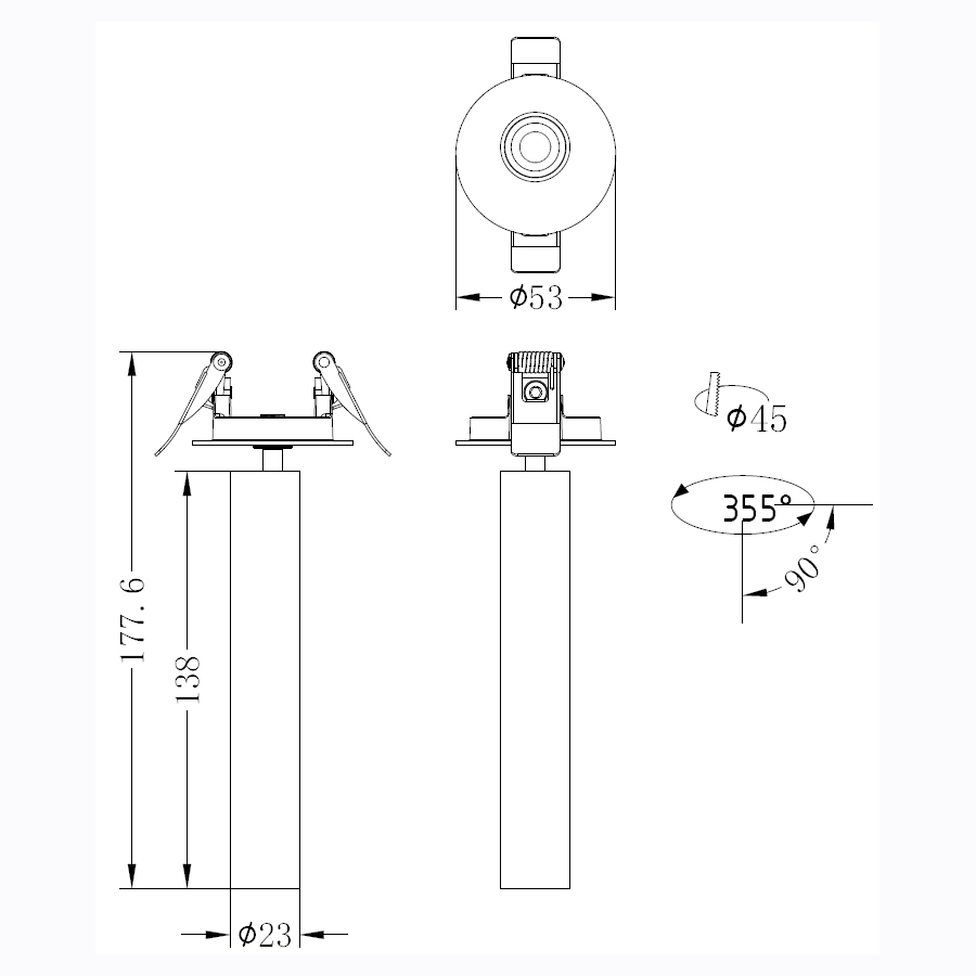Φωτιστικό σποτ ημιχωνευτό σε άσπρο χρώμα με μαύρο ανακλαστήρα.