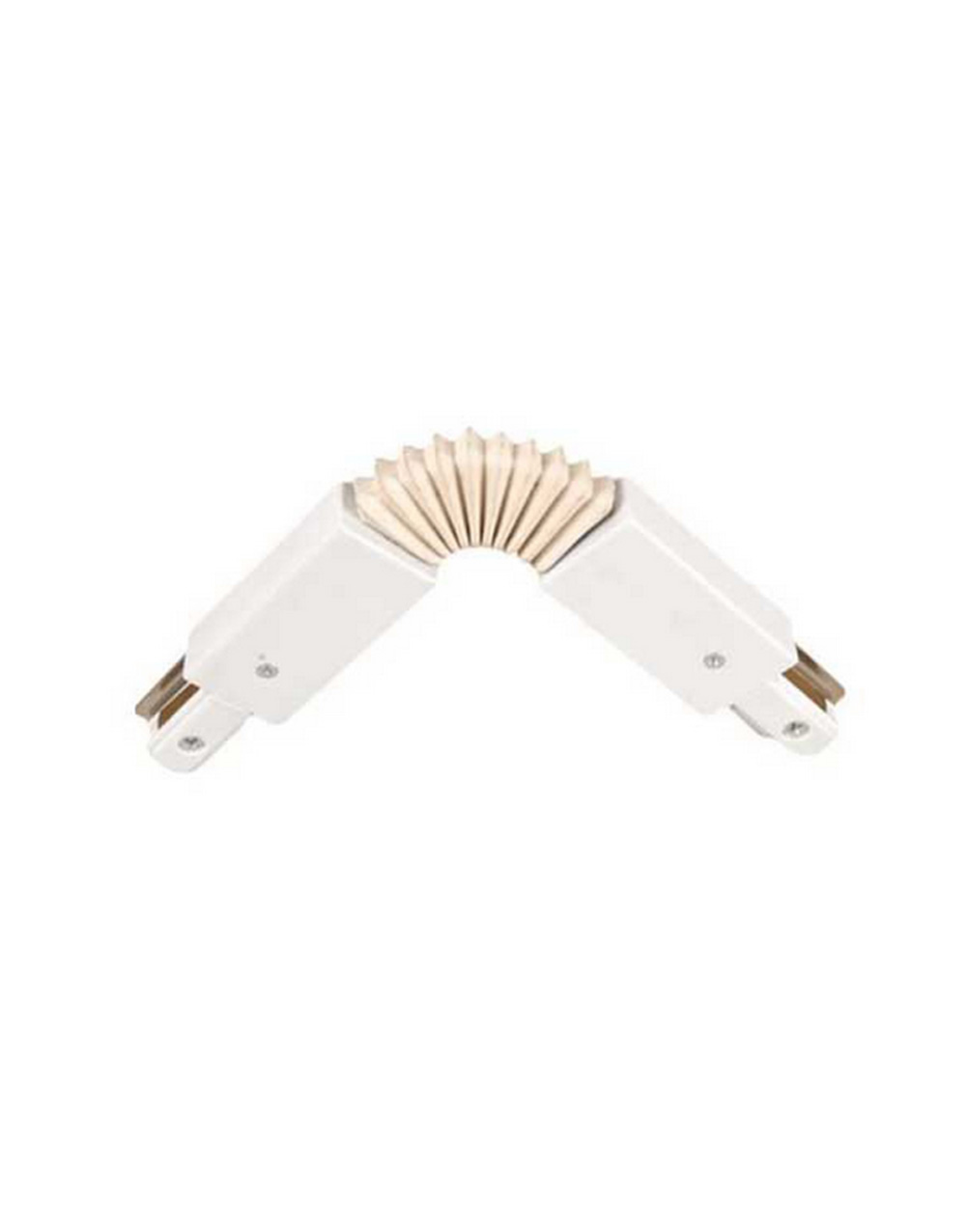 Εύκαμπτος σύνδεσμος για μονοφασική ράγα Universe. Είναι από πλαστικό και χάλκινο υλικό σε λευκό χρώμα.