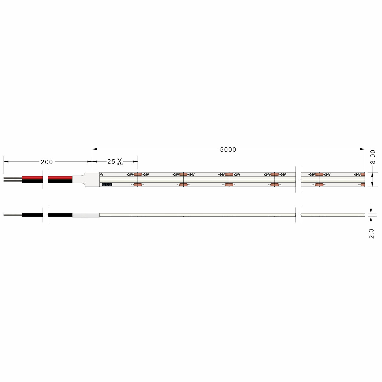 Ταινία LED Emphasis COB 4,8 Watt/m 24V CRI90 IP20 320 LED/m 624Lm/m 3000K 5m (8mm) CUBALUX – 2-CL770154