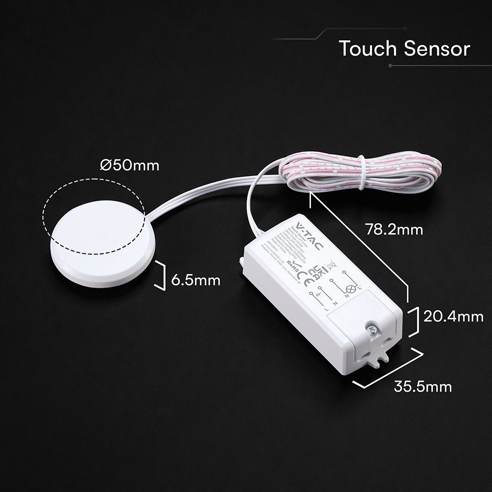 Ο V-TAC 24358VT Touch Sensor είναι ένας πρακτικός διακόπτης αφής που επιτρέπει τον εύκολο έλεγχο φωτισμού LED έως 600 W. Με απλό άγγιγμα στην επιφάνεια του αισθητήρα μπορείτε να ενεργοποιείτε ή να απενεργοποιείτε τον φωτισμό, προσφέροντας μια σύγχρονη και κομψή λύση διαχείρισης φωτισμού.