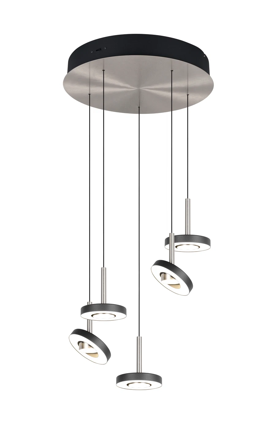 Trio Lighting – 334430507 GUANO Κρεμαστό Φωτιστικό Ροζέτα LED 40W 4250lm Step Dimmable CCT Μαύρο & Νίκελ Ματ