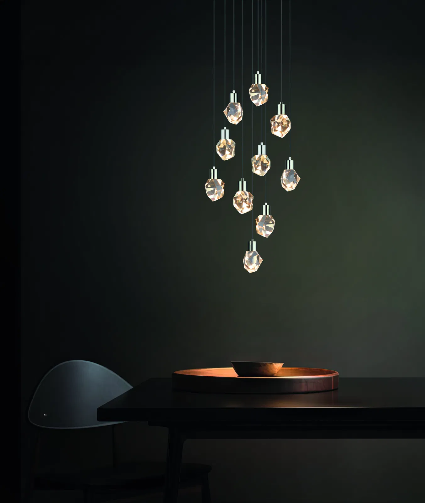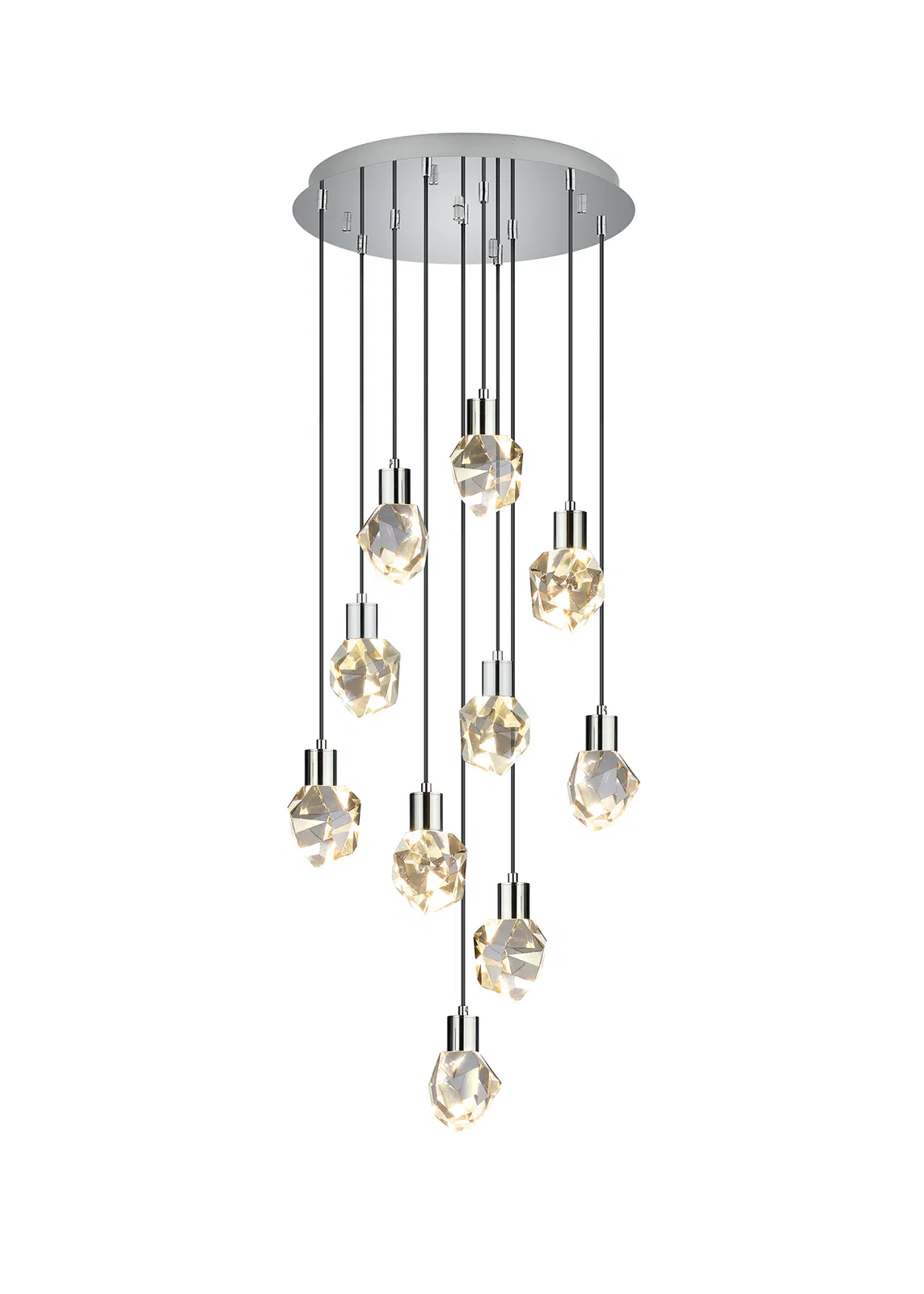 Το design ξεχωρίζει με κρύσταλλα και μεταλλικό σώμα σε χρώμιο, δημιουργώντας κομψό παιχνίδι φωτός και σκιάς που αναδεικνύει τον χώρο, καθιστώντας το φωτιστικό κεντρικό στοιχείο διακόσμησης. Είναι ιδανικό για τοποθέτηση πάνω από τραπέζι φαγητού, στο καθιστικό ή σε χώρους όπου θες εντυπωσιακό αλλά και λειτουργικό φωτισμό.