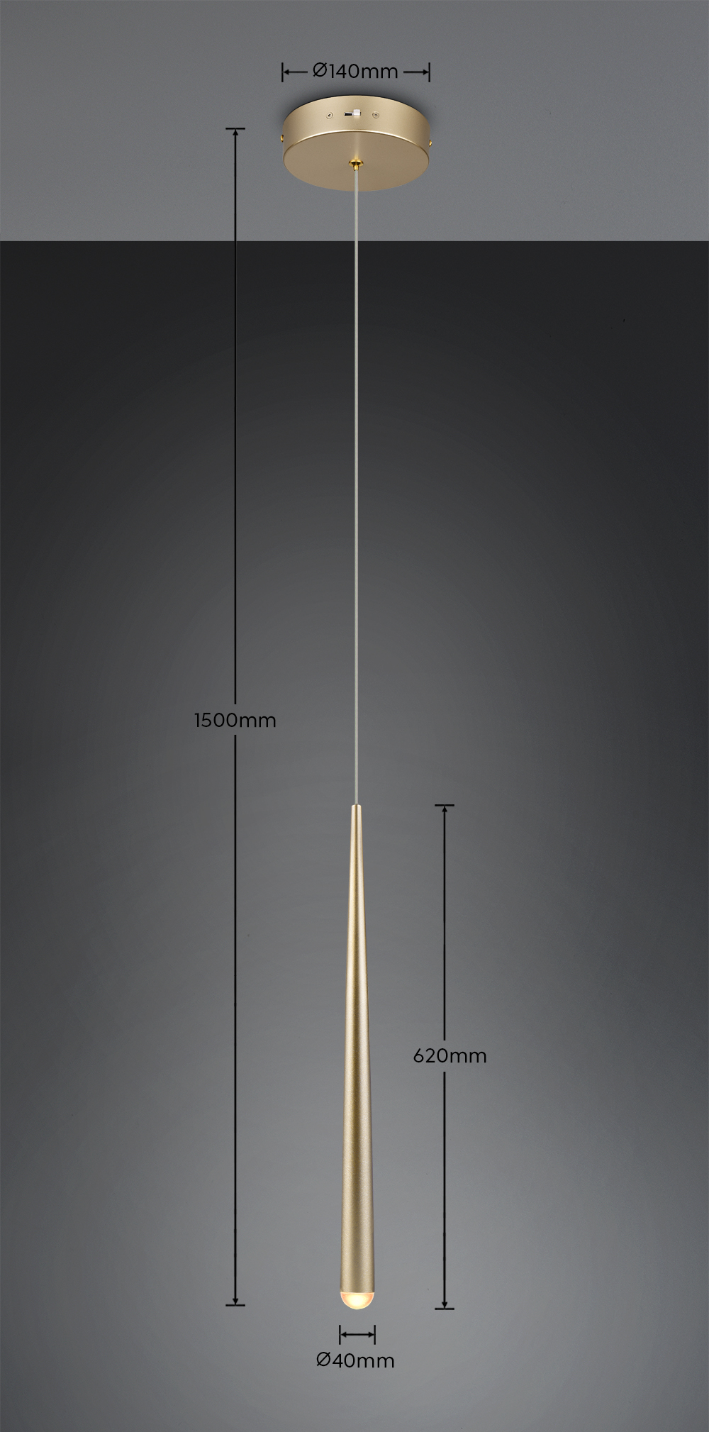 Το φωτιστικό διαθέτει ρυθμιζόμενο ύψος κρέμανσης, ώστε να τοποθετείται στο ακριβές σημείο που επιθυμείς, ενώ το χρυσό φινίρισμα του προσδίδει εκλεπτυσμένο και μοντέρνο χαρακτήρα που ταιριάζει σε ποικίλα στυλ εσωτερικής διακόσμησης.