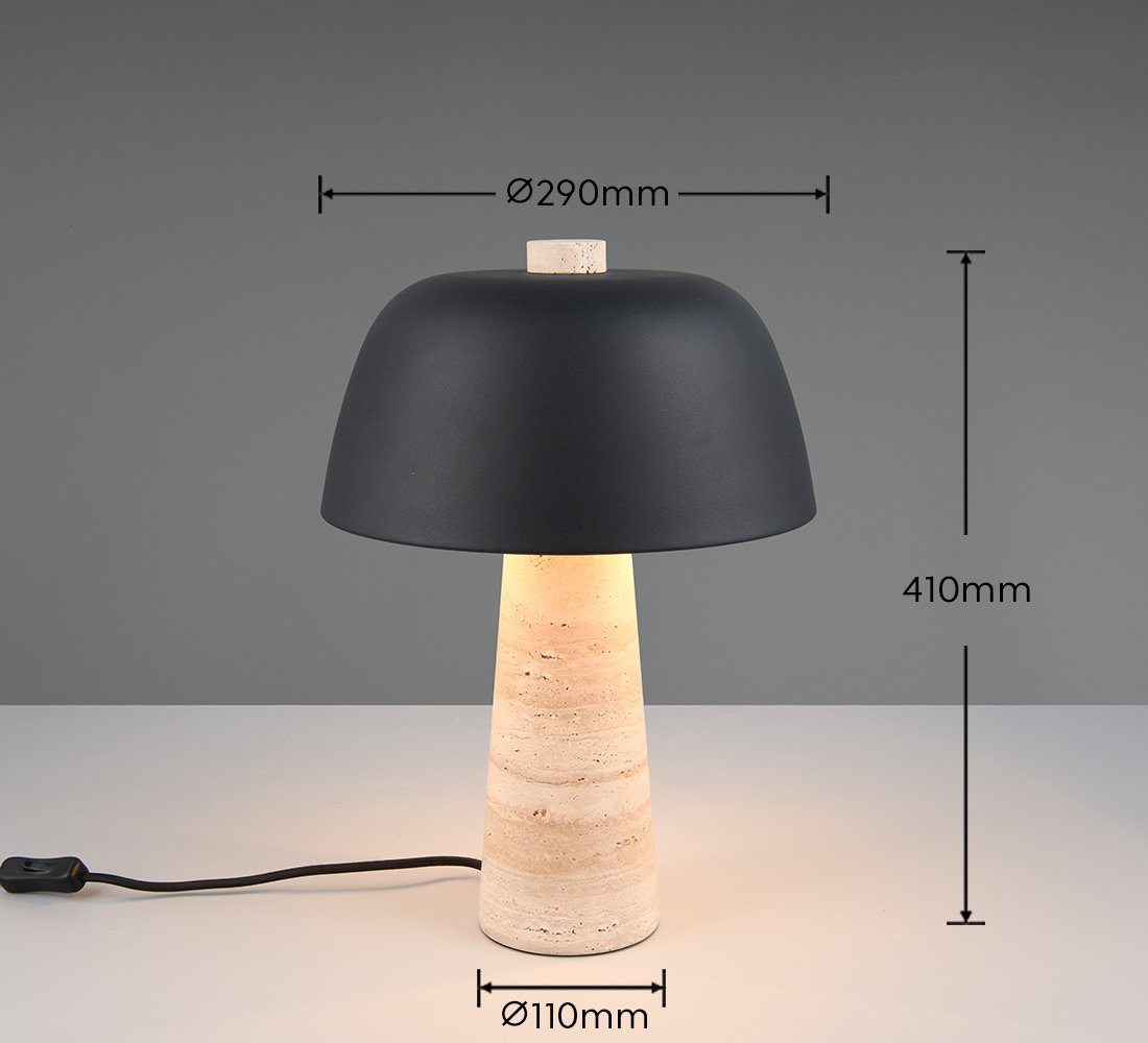 Trio Lighting Timba 567800232 – Επιτραπέζιο Φωτιστικό με Τραβερτίνη πέτρα Μαύρο & 2 × E27