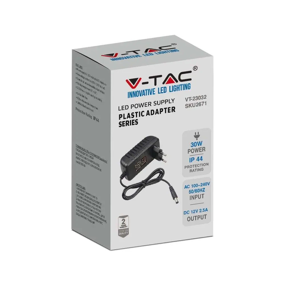 Τροφοδοτικό για LED 30W 12V IP44 Πλαστικό V-TAC – 2671