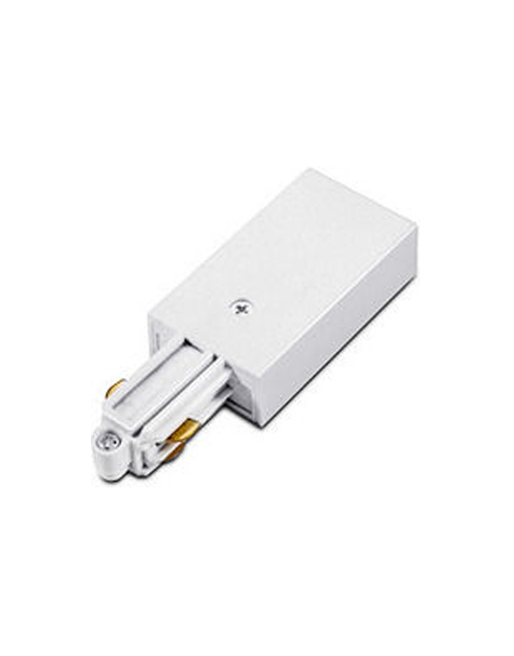 Τροφοδοτικό για μονοφασική ράγα Universe. Είναι από πλαστικό και χάλκινο υλικό σε λευκό χρώμα.