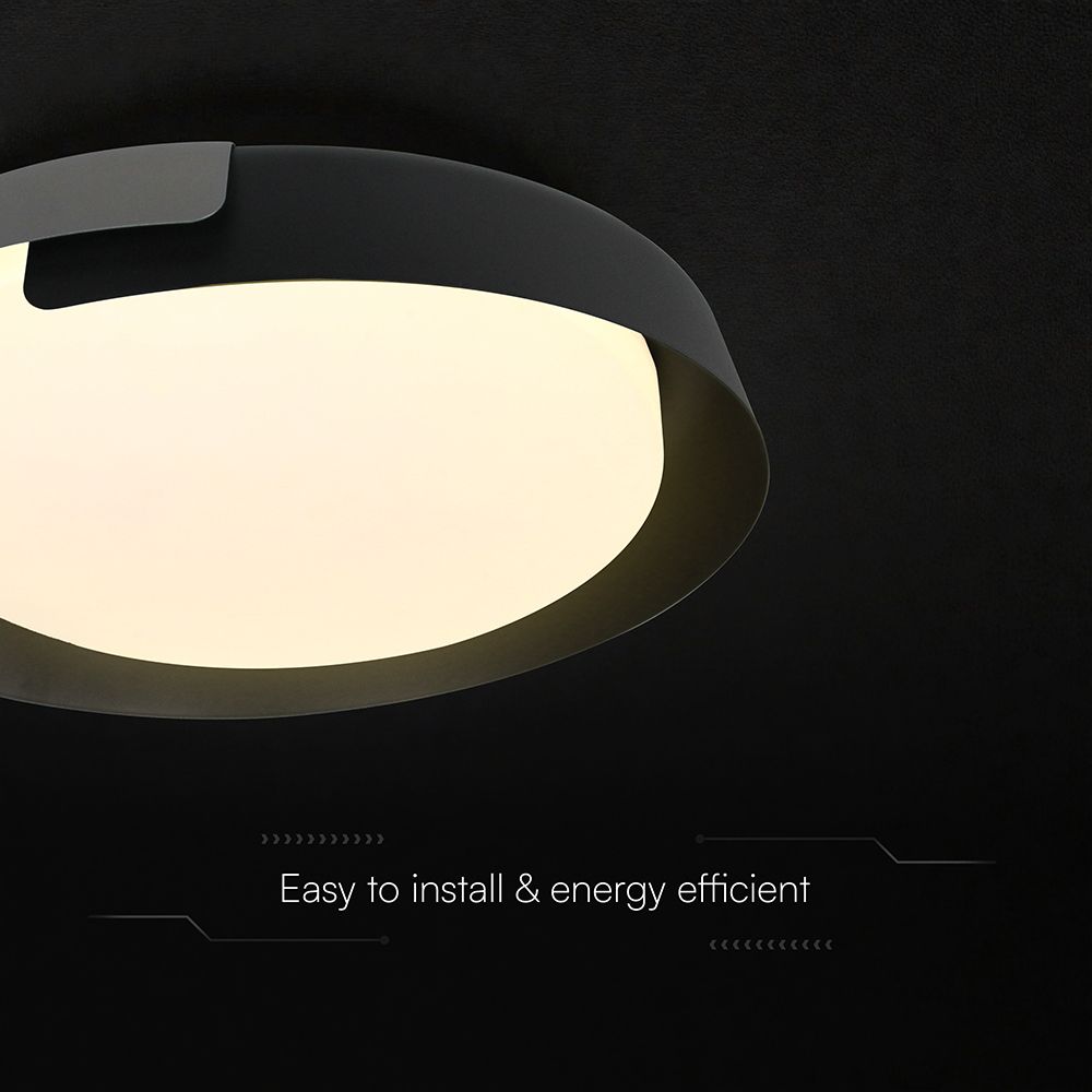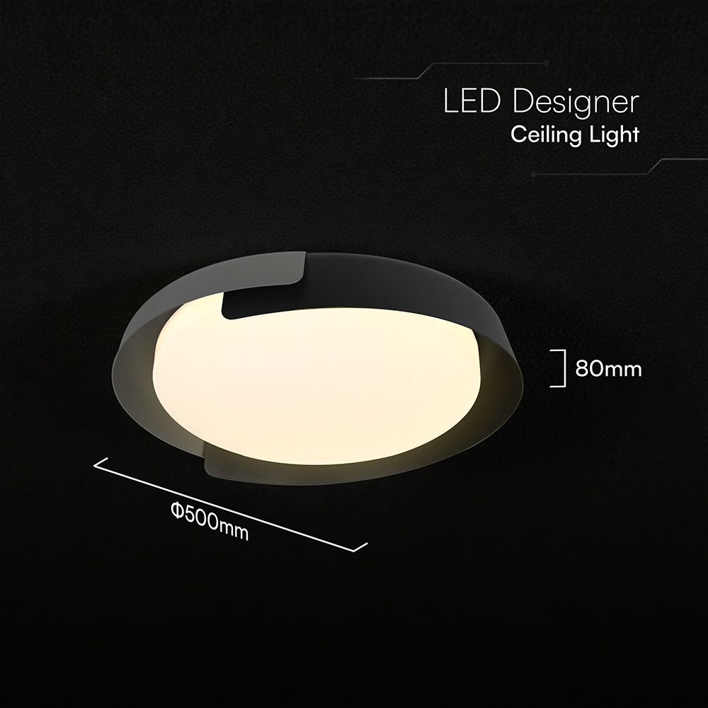 Με διάμετρο 500mm και ύψος 80mm, η πλαφονιέρα διαθέτει κομψό σχεδιασμό σε Black + Grey απόχρωση, που ταιριάζει άψογα σε μοντέρνους εσωτερικούς χώρους.