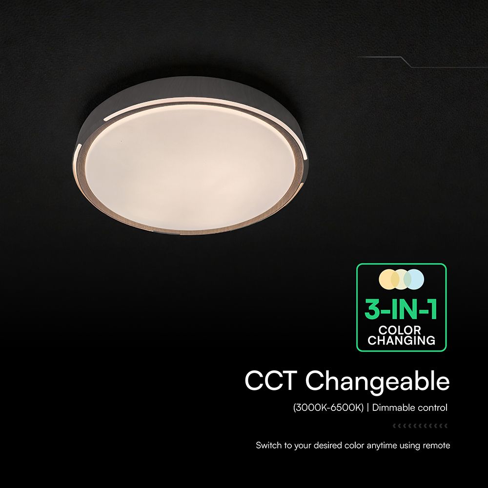Η 3-in-1 CCT λειτουργία επιτρέπει την επιλογή μεταξύ θερμού (3000 K), ουδέτερου (4000 K) και ψυχρού (6500 K) λευκού φωτός, προσαρμόζοντας την ατμόσφαιρα ανάλογα με την ώρα της ημέρας ή τις ανάγκες του χώρου. Ο φωτισμός μπορεί να ρυθμιστεί και να αμυδρωθεί (dimmable) με το τηλεχειριστήριο που περιλαμβάνεται, δίνοντας μέγιστο έλεγχο χωρίς επιπλέον καλωδιώσεις.